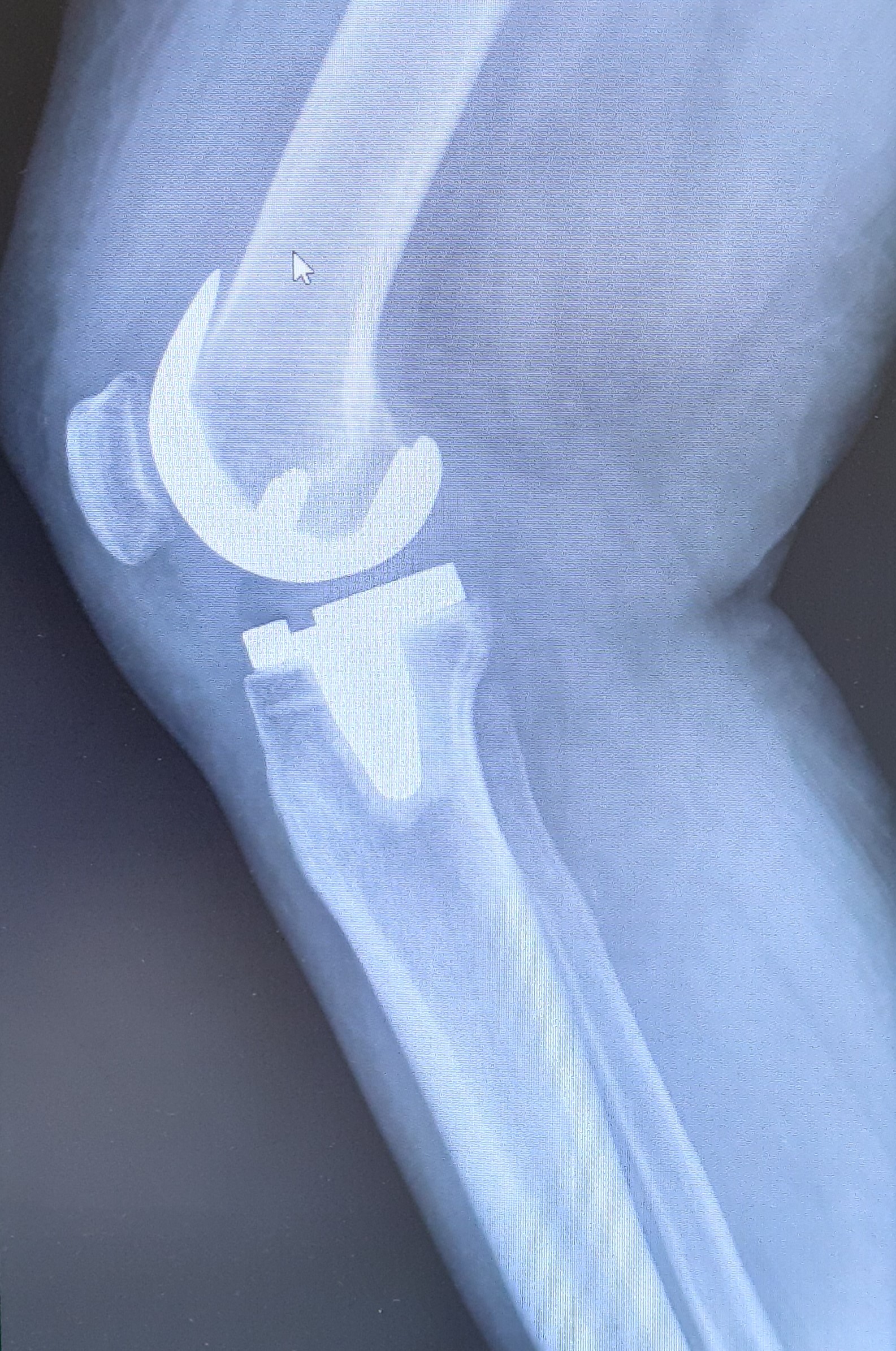 Bei fortgeschrittener Arthrose des Kniegelenks und entsprechendem Leidensdruck ist der künstliche Kniegelenksersatz die Therapie der Wahl. Dabei werden zunächst die geschädigten Knorpelanteile schablonenhaft entfernt und die Gelenkflächen mit Metallflächen ersetzt. Diese Metallflächen artikulieren über einen Mittelteil aus hochvernetztem Kunststoff, dem sogenannten Inlay.
